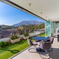 - EXCLUSIEF PENTHOUSE | MIRADOR DE ESTEPONA-HEUVELS Panoramisch uitzicht op zee en bergen · Ongeëvenaarde privacy · 400 m² totale ruimte Dit uitzonderlijke penthouse is de enige woning op deze verdieping en biedt een ongeëvenaarde privacy en exclusiviteit die nergens anders in het complex te vinden is. Dankzij de zeldzame 360°-oriëntatie geniet u vanuit elke kamer, elke dag, van een adembenemend uitzicht op zowel de Middellandse Zee als de Andalusische bergen. De woning omvat 108,46 m² bebouwde oppervlakte plus een terras van 307,60 m² – in totaal circa 400 m². Een deel van het terras is afgesloten met Lumon glazen gordijnen en voorzien van airconditioning, waardoor het bruikbare interieur is uitgebreid tot circa 200 m² leefruimte die het hele jaar door gebruikt kan worden, naast 200 m² open terras voor puur mediterraan buitenleven. Het interieur is doordacht heringericht in twee ruime slaapkamersuites, waarbij comfort en een vloeiende overgang centraal stonden. De woning is uitstekend afgewerkt, met vloerverwarming in de badkamers en hoogwaardige meubels die apart kunnen worden overeengekomen. De gemeenschap staat kortetermijnverhuur als vakantieverblijf toe, waardoor dit penthouse zowel een perfecte woning als een aantrekkelijke investeringsmogelijkheid is in een van de meest actieve verhuurmarkten aan de Costa del Sol. 2 eigen parkeerplaatsen en een grote berging zijn inbegrepen. Gelegen op een van de meest prestigieuze woonlocaties van Estepona, met gemakkelijke toegang tot de jachthaven, de strandpromenade en zowel de luchthaven van Málaga als die van Gibraltar.